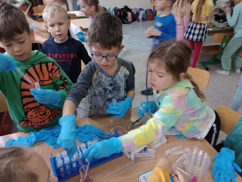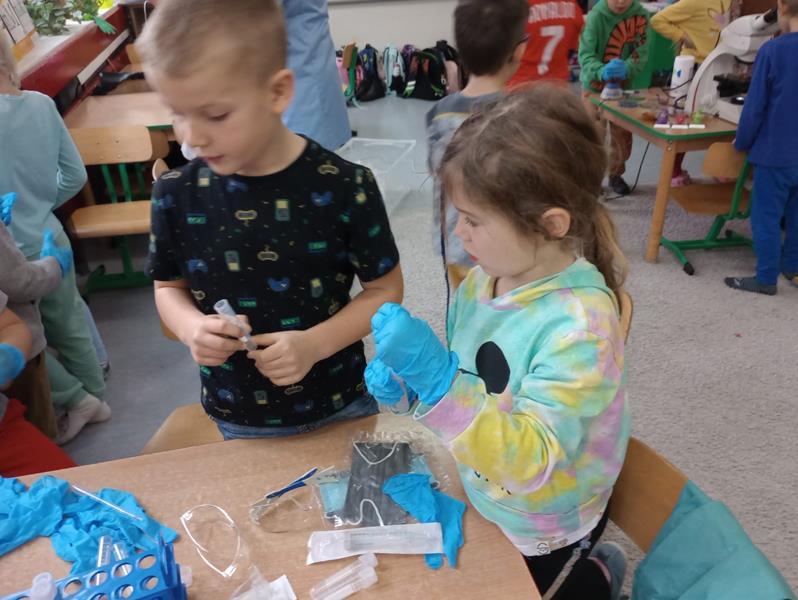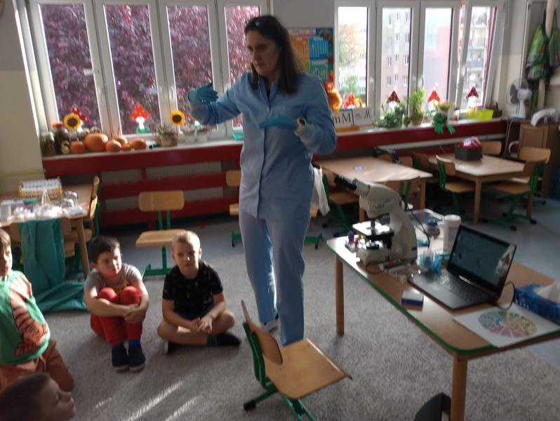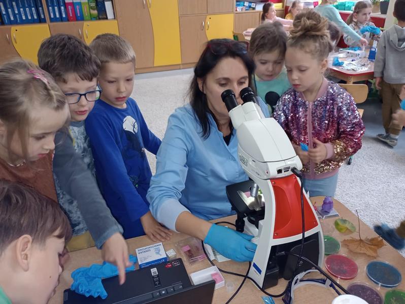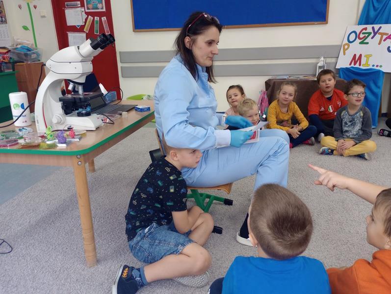 8 listopada grupa 0c miała niezwykły dzień. Za sprawą Pani Martynki- mamy Nikosia nasza sala zamieniła się w prawdziwe laboratorium. Dzieci przez mikroskop oglądały np. skrzydła muchy, łuskę ryby, same tworzyły pożywki dla bakterii. Dzieci były zachwycone. Za te niezwykłe spotkanie jeszcze raz bardzo dziękujemy!!!!![]()