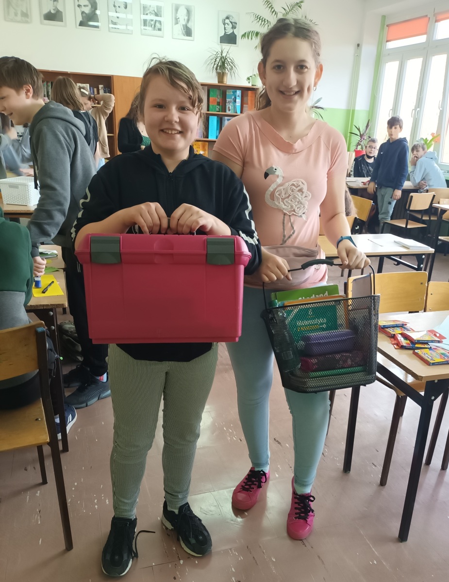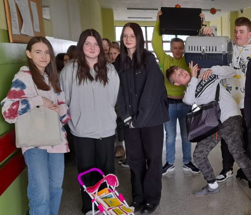 Uczniowie naszej szkoły zastąpili plecaki m. in. torbami, wózkami dla lalek , czy też sklepowymi, futerałami na gitarę, transporterem dla kota, koszami wiklinowymi, reklamówkami, torbami , walizkami, a nawet