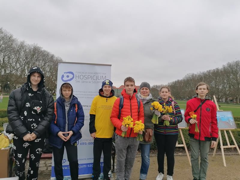 W dniach 15-16 kwietnia 2023 r. Szkolne Koło Wolontariatu maszerując po Jasnych Błoniach w symbolicznych żółtych koszulkach włączyło się do akcji pt. „Hospicyjne Pola Nadziei”. Wręczaliśmy zerwane żonkile tym, którzy zechcą wesprzeć tę jedyną w Szczecinie placówkę stacjonarną, w której opiekę znajdują chorzy w stanie terminalnym.