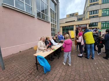 Bardzo dziękujemy rodzicom, którzy dzielnie stali przy stanowiskach oraz tym, którzy wsparli festyn swoją pomocą. Moc podziękowań dla zaangażowanych w festyn nauczycieli oraz pracowników szkoły, dla harcerzy, hm. Krzysztofa Kowalczyka – Drużynowego 65 DH „Patronusy” oraz pwd. Agaty Klunder – Drużynowa 64 GZ „Świetliki”.