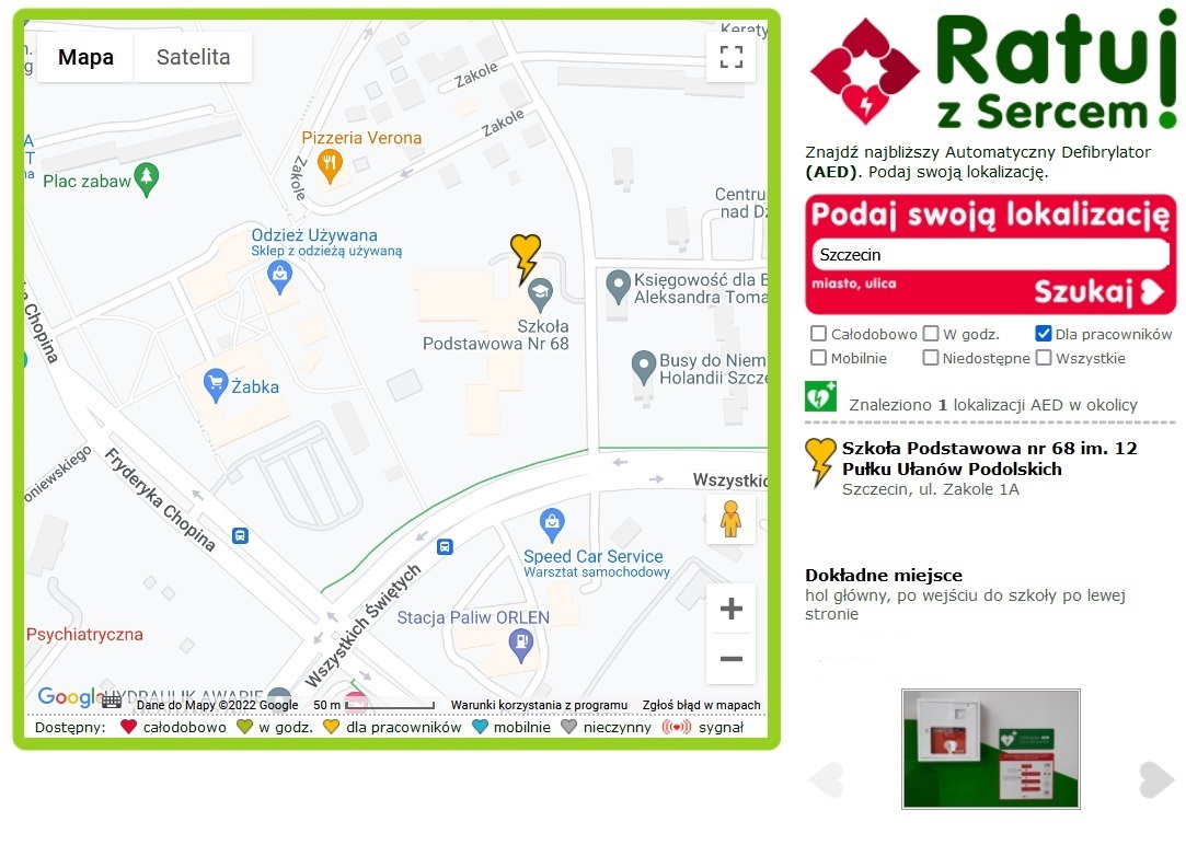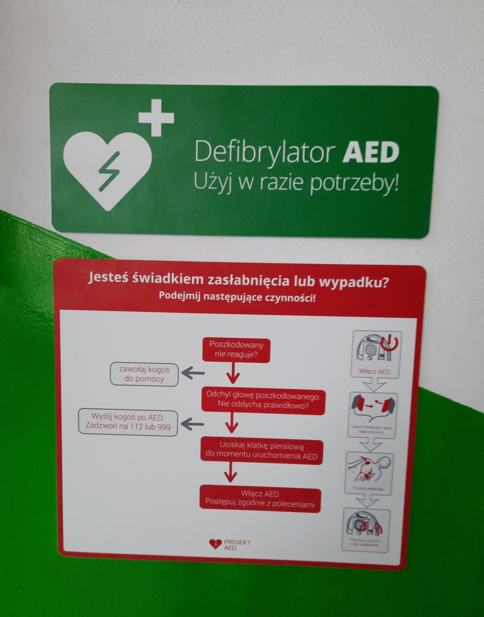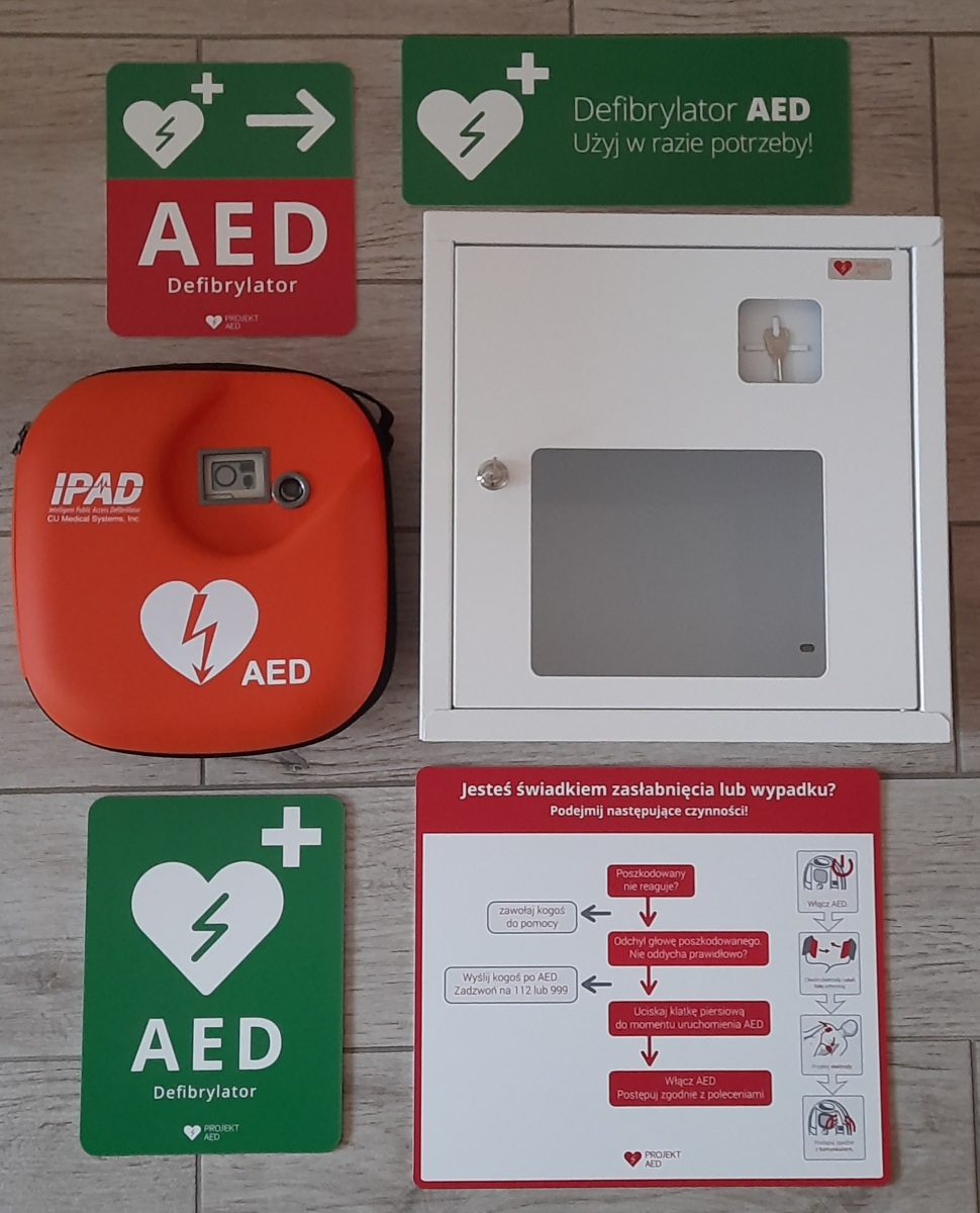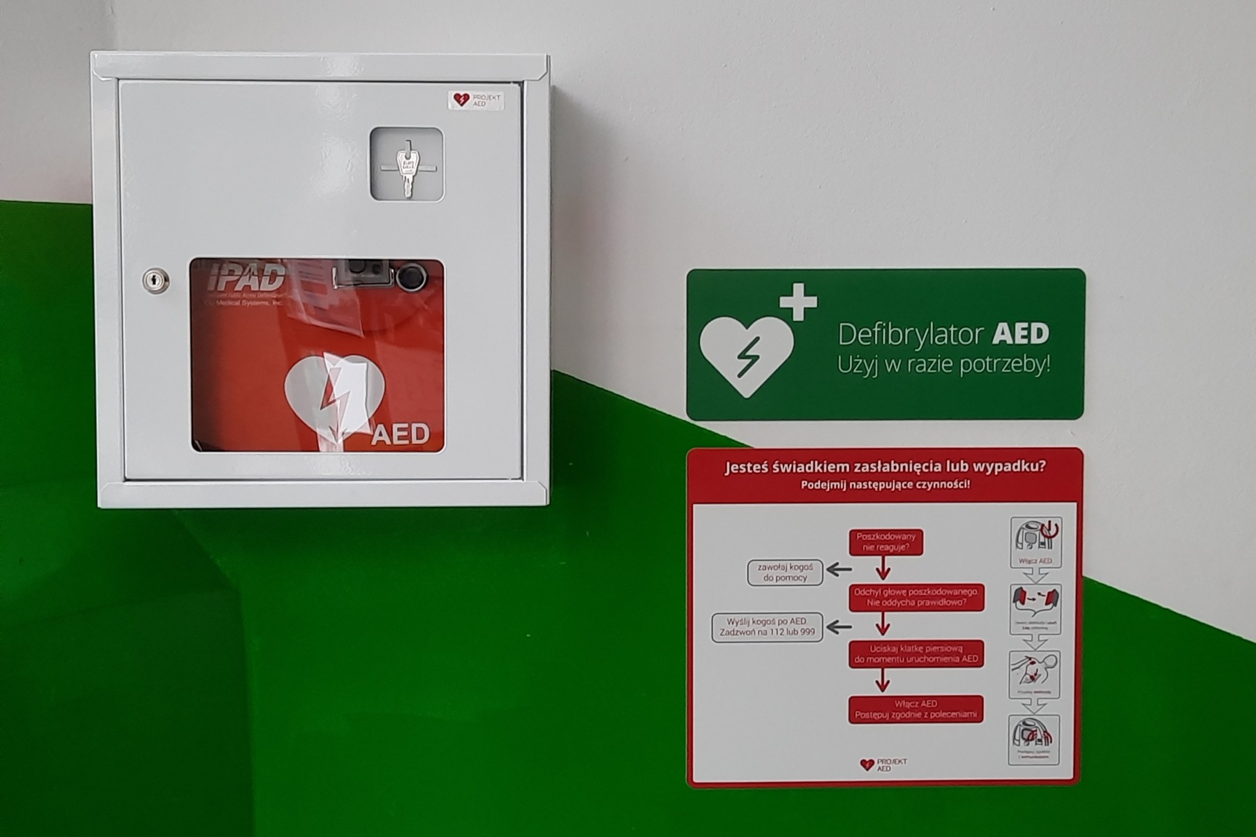 W dniu dzisiejszym (09.11.2022 r.) w naszej szkole został zamontowany AED, czyli automatyczny defibrylator zewnętrzny, który za pomocą poleceń głosowych pomaga przeprowadzić akcję defibrylacji w przypadku zatrzymania akcji serca. Znajduje się on z lewej strony po wejściu do szkoły, w miejscu monitorowanym.