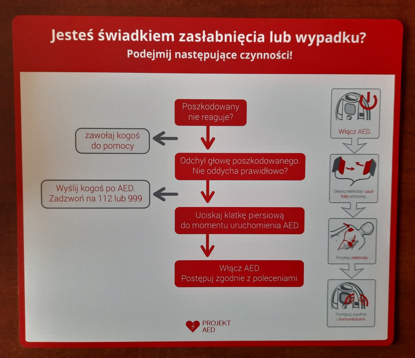 Automatyczny defibrylator zewnętrzny AED po uruchomieniu wykorzystuje komunikaty głosowe oraz rysunki w celu instruowania, jak należy wykonać akcję reanimacyjną, zanim przyjedzie pogotowie ratunkowe. AED to urządzenie, które po podłączeniu elektrod do klatki piersiowej poszkodowanego, analizuje rytm serca i określa, czy wymaga defibrylacji, dlatego nie należy obawiać się skorzystania z AED, ratując komuś życie.