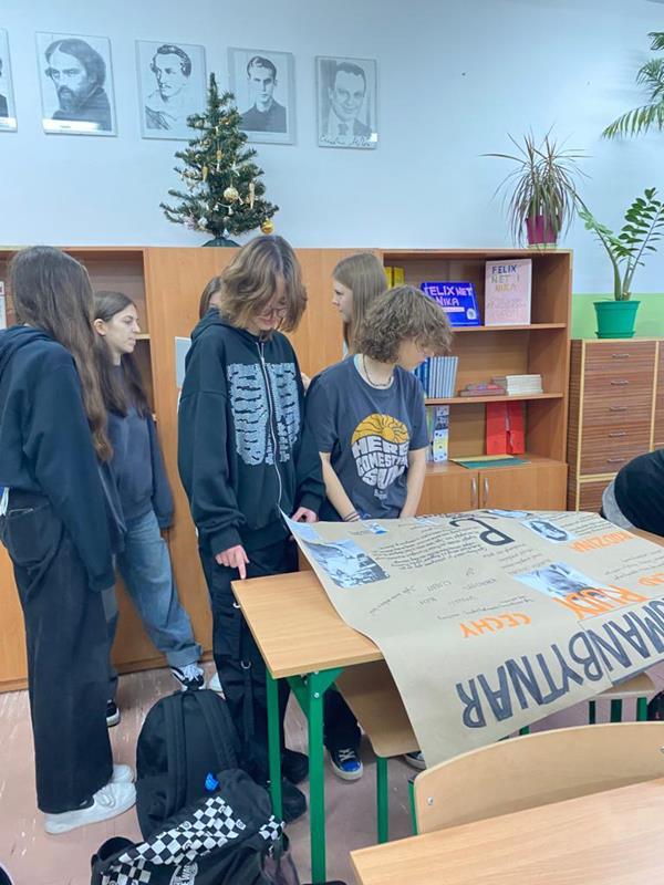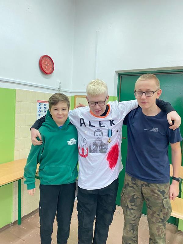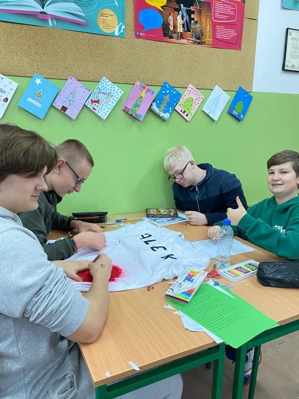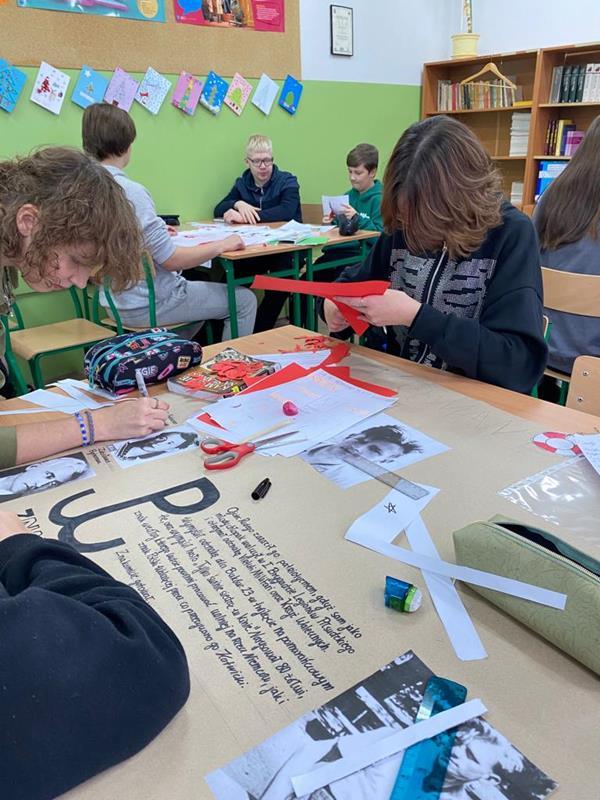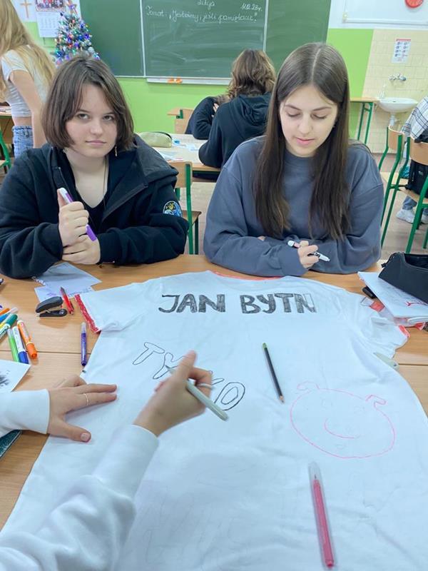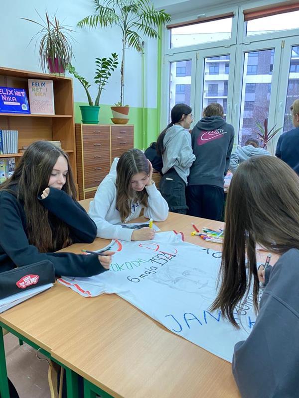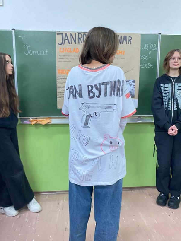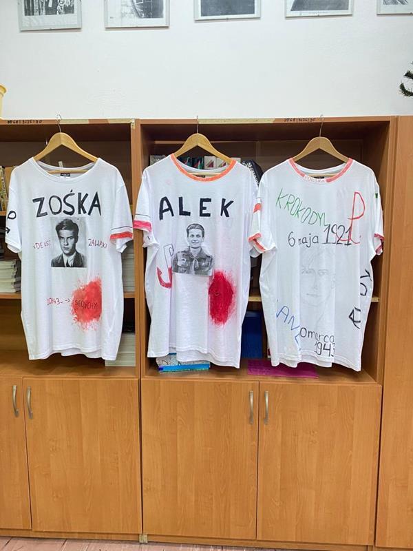 W czasie prezentacji prac (plakaty, koszulki) uczniowie mogli utożsamić się postaciami, zakładając przygotowane przez samych siebie koszulki poświęcone wspomnianym bohaterom.