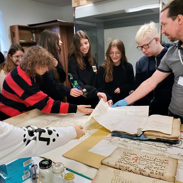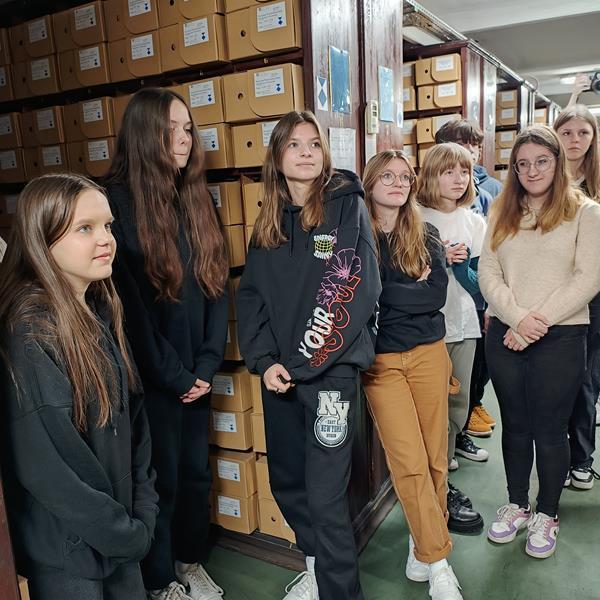 Dnia 21 listopada uczniowie klasy VIII c wraz z p. Karoliną Kowalczyk, wychowawcą klasy, odwiedzili historyczne archiwum w Szczecinie – miejsce przechowywania dokumentów o znaczeniu państwowym. Młodzież dowiedziała się, że archiwum utworzono w 1827 roku w byłym zamku książęcym (współcześnie Zamek Książąt Pomorskich), ówczesnej siedzibie Rejencji Szczecińskiej, która odziedziczyła wcześniej zgromadzone zbiory książęce, brandenburskie i szwedzkie.