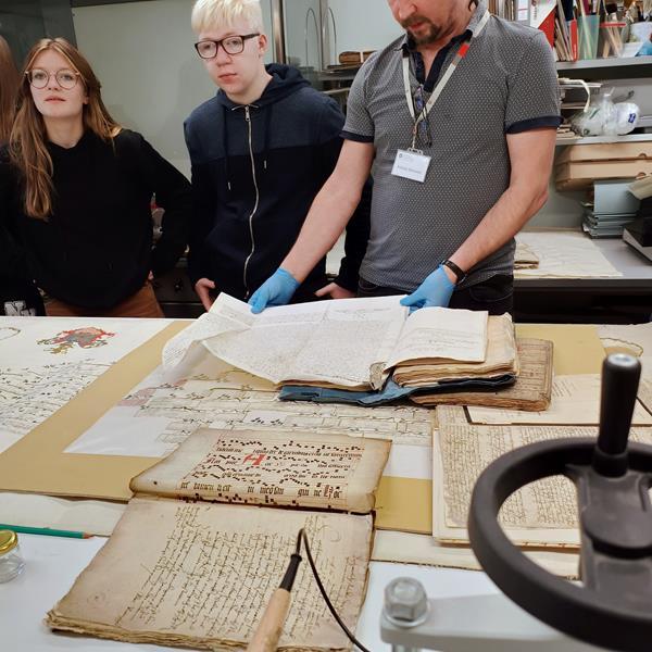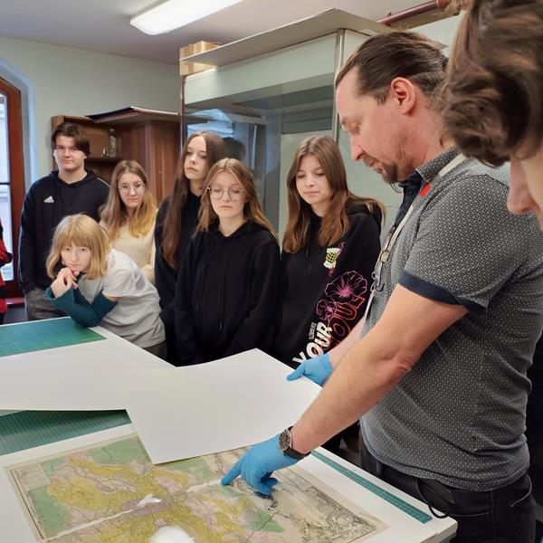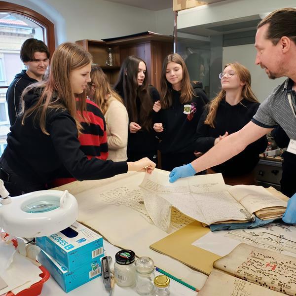 Interesującą lekcję poprowadził p. Bartosz Sitarz. Tematem spotkania była rola i znaczenie archiwów oraz źródeł historycznych. Młodzież poznała znaczenie terminu archiwum w czasach historycznych i obecnie, poznała zadania archiwów na przestrzeni wieków, historię budynku, zasady udostępniania zasobów archiwalnych, podstawowe pojęcia: zasób archiwalny, zespół archiwalny, jednostka archiwalna, inwentarz zasobu, źródło archiwalne. Ponadto uczniowie wzięli udział w prezentacji wybranych materiałów archiwalnych.