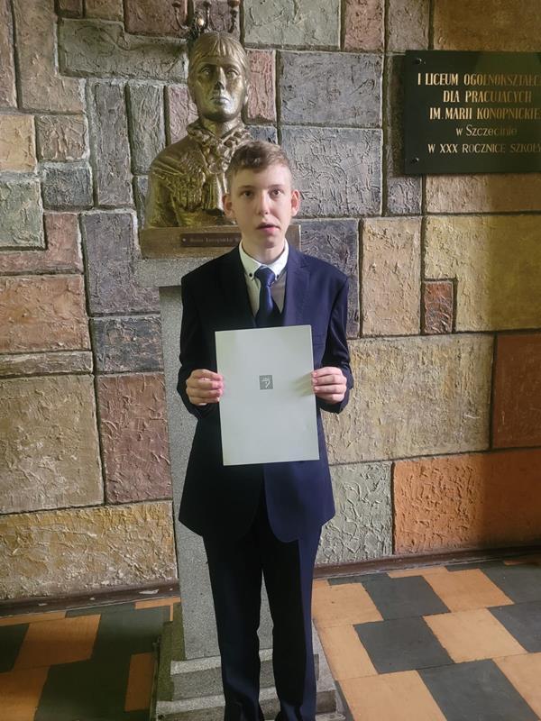 Serdecznie gratulujemy Konradowi, jego Rodzicom oraz uczącym nauczycielom.