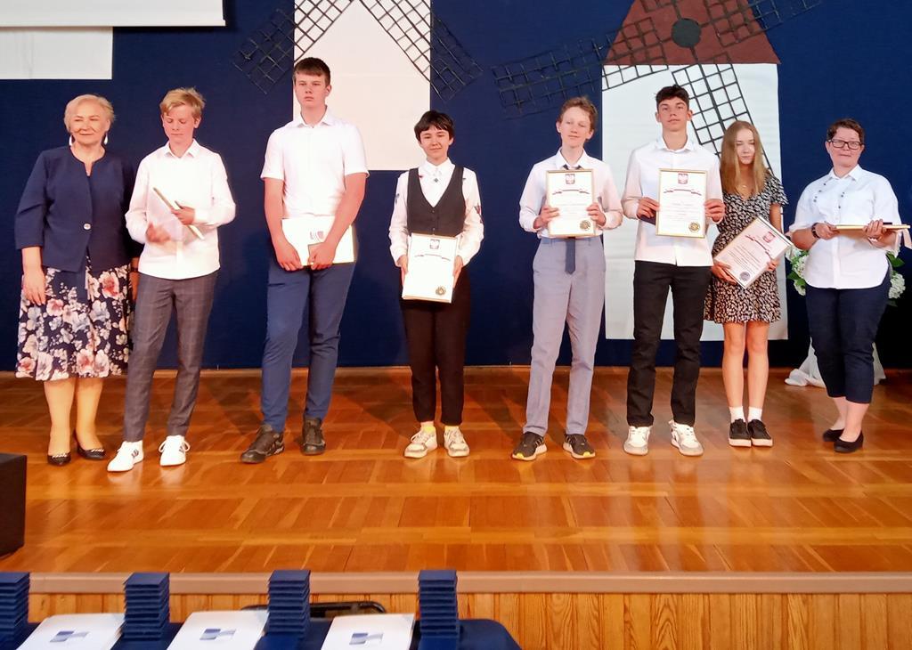 13 czerwca br. w Szkole Podstawowej nr 35 w Szczecinie Zachodniopomorski Kurator Oświaty p. Katarzyna Koszewska oraz Wojewoda Zachodniopomorski p. Zbigniew Bogucki uroczyście podsumowali konkursy przedmiotowe – wręczyli pamiątkowe medale, dyplomy i gratulacje. Laureatką konkursu z chemii została Łucja Niewiadomska z klasy 8b.