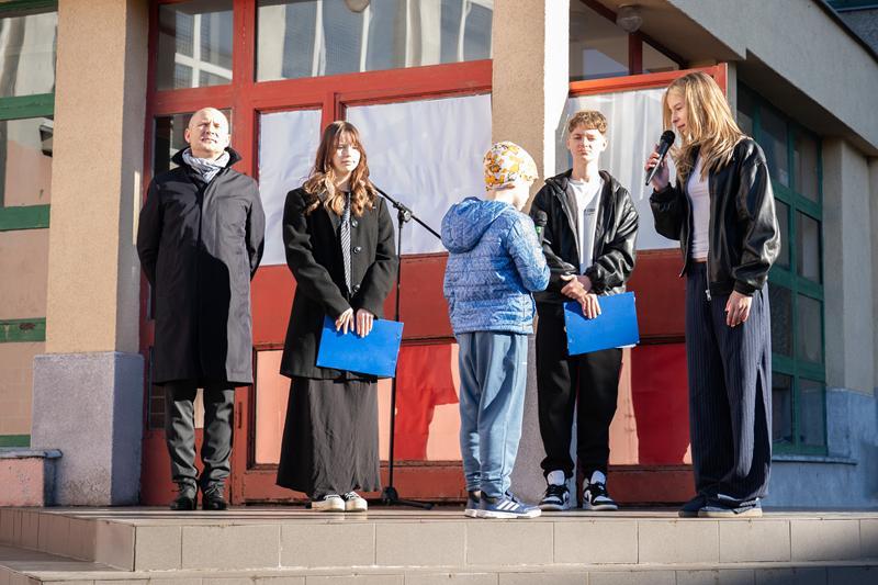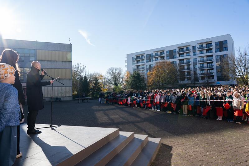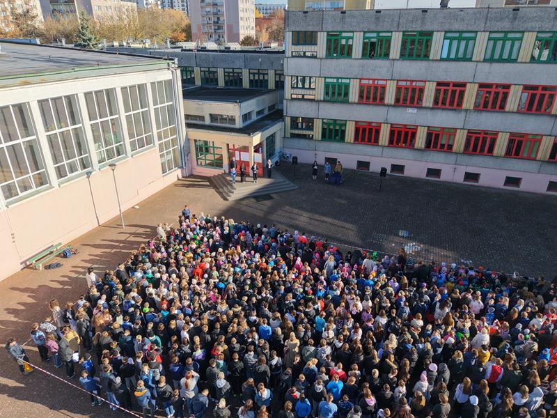 Do obchodów Święta Niepodległości włączyliśmy się również kolejnego dnia, uczestnicząc w ogólnopolskiej akcji „Szkoła do Hymnu”, w ramach której cała społeczność szkolna o symbolicznej godzinie odśpiewała z dumą „Mazurka Dąbrowskiego”.