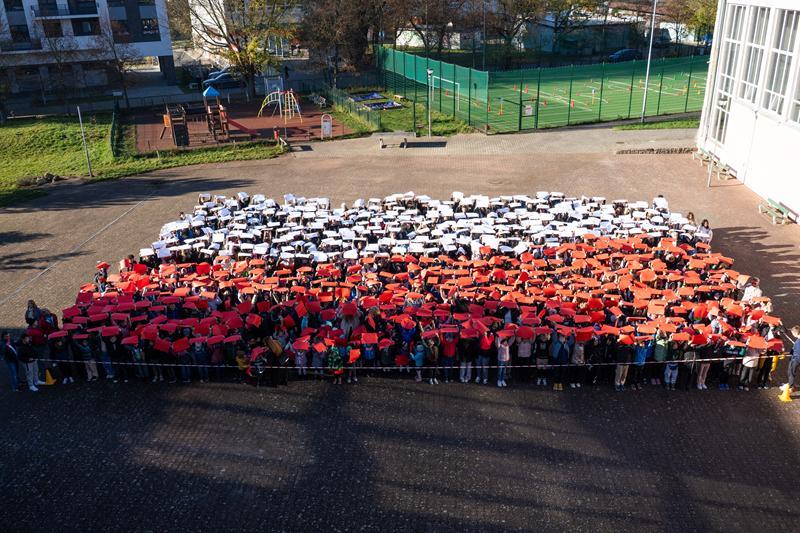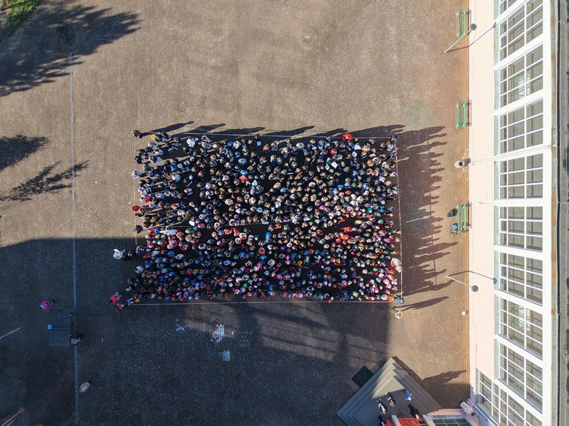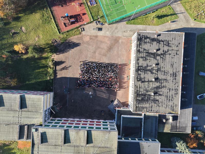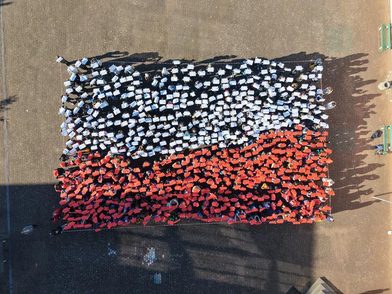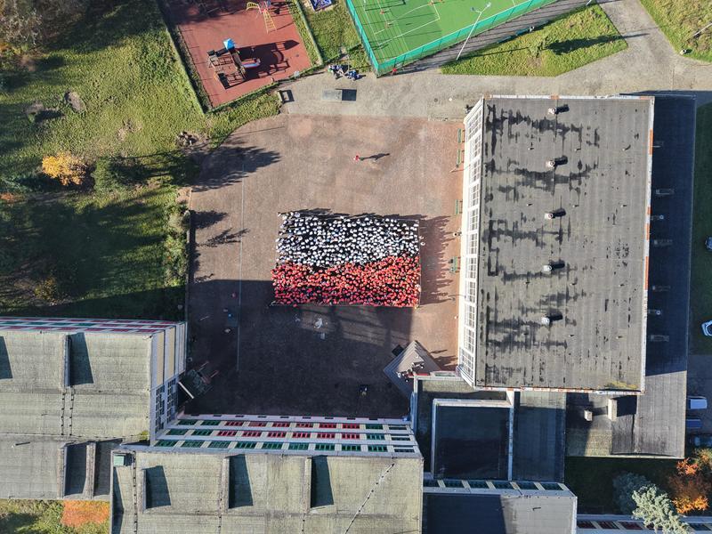 11 listopada to wyjątkowy dzień dla wszystkich Polaków – Święto Niepodległości. Z tej okazji 6 listopada uczniowie wraz z nauczycielami naszej szkoły uczcili tę ważną rocznicę krótkim, uroczystym apelem, który odbył się nie w murach szkoły, ale na szkolnym boisku. Wspólnie, trzymając w dłoniach białe i czerwone kartki, stworzyliśmy ogromną biało-czerwoną flagę – symbol naszej ojczyzny i jedności. Całość została uwieczniona na pamiątkowym zdjęciu wykonanym z drona, które pięknie oddało atmosferę wspólnego świętowania i patriotyzmu.