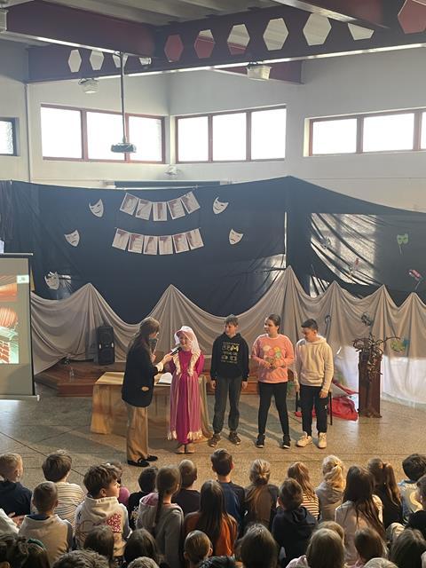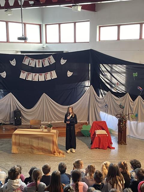 W czwartek, 10 kwietnia, uczniowie i uczennice klas 4-7 mieli okazję uczestniczyć w obchodach szkolnego Dnia Teatru.