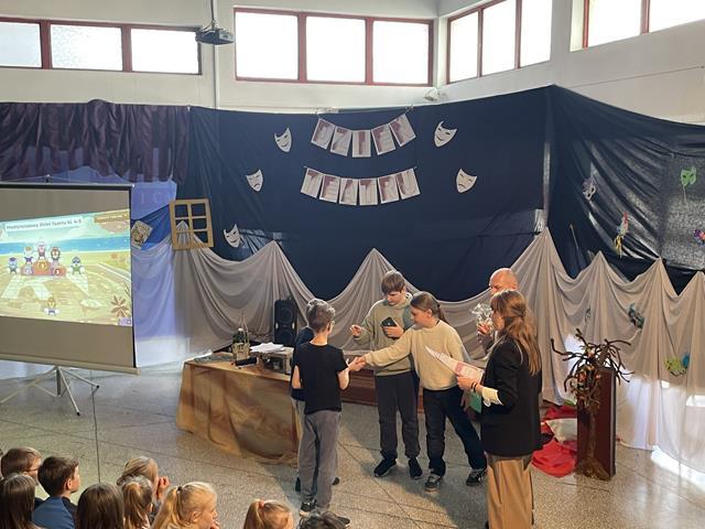 Na zakończenie przedstawiciele każdej klasy zmierzyli się w quizie z wiedzy o teatrze, a także sprawdzili swoją uważność, odpowiadając na pytania dotyczące obejrzanych przedstawień. Zwycięskie duety zostały nagrodzone dyplomami oraz słodkimi upominkami.