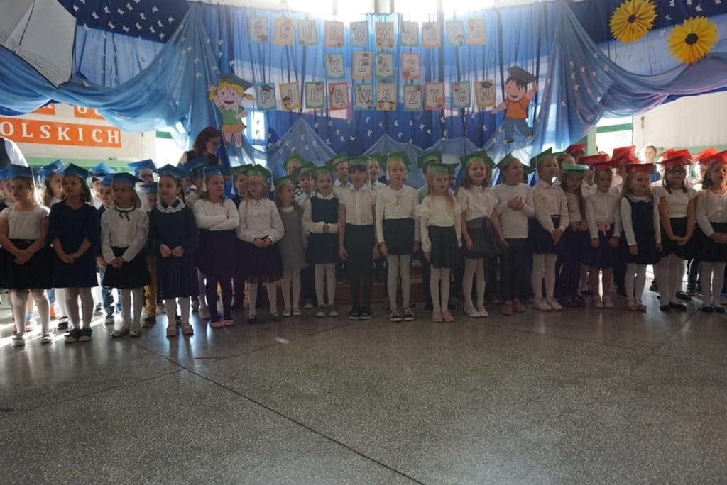 19 października 2022 r. odbyła się w naszej szkole uroczystość pasowania na ucznia. Jest to szczególny dzień, który na długo pozostanie w pamięci każdego ucznia klasy pierwszej. W tym dniu dzieci oficjalnie przyjęte zostały do grona uczniów szkoły. Podczas uroczystości pierwszoklasiści wykazali się pięknym śpiewem, tańcem, wiedzą o Polsce, a także znajomością zasad bezpieczeństwa w szkole i na drodze. Najważniejszą częścią uroczystości, na którą wszyscy czekali było ślubowanie oraz pasowanie wielkim ołówkiem przez Panią Wicedyrektor Ewę Brandeburę. Pierwszaki głośno i z przekonaniem przyrzekały być dobrymi i pilnymi uczniami oraz rzetelnie wypełniać swoje obowiązki, o czym przypominać im będą otrzymane statuetki. Wszystkim pierwszoklasistom w tak ważnym dla nich dniu życzymy wielu sukcesów na nowej drodze obowiązków szkolnych.
