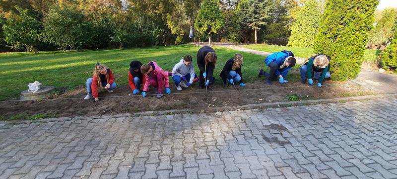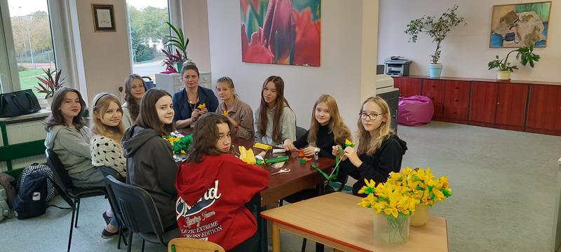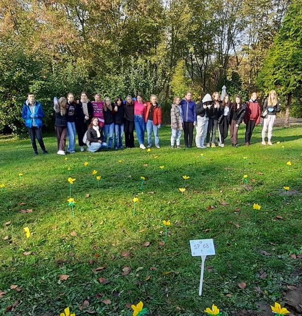 W dniu 14.10.2022 r. uczniowie ze Szkolnego Koła Wolontariatu odwiedzili Hospicjum Św. Jana Ewangelisty w Szczecinie. Tam sadzili żonkile, symbol nadziei, która jest nierozłącznym etapem życia pracy hospicyjnej i ludzi chorych oraz ich bliskich. Żonkile z bibuły (100 szt.) oraz zgromadzone artykuły higieniczne zanieśliśmy w piątek 14 października do Hospicjum. Tam wykonywaliśmy również prace porządkowe grabiąc liście i przygotowując ziemię pod zasiew kwiatów.