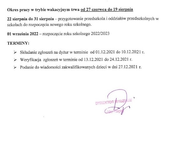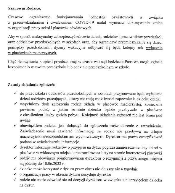 Zgłoszenie na dyżur wakacyjny 2022 ← (do pobrania)
