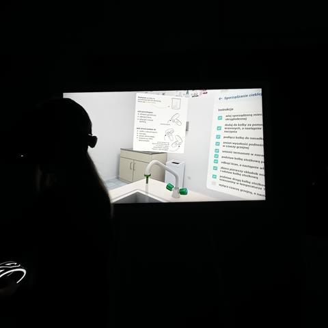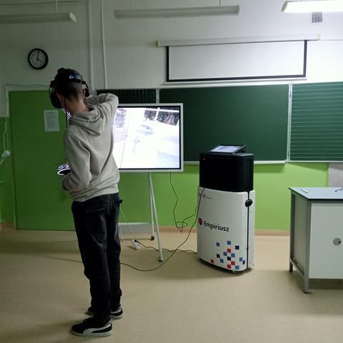 Uczeń, korzystając z gogli oraz kontrolerów, przeprowadza zgodnie z instrukcją wybrane doświadczenie. Pozostali uczniowie obserwują jego przebieg na ekranie lub tablicy interaktywnej. Notują obserwacje oraz formułują wniosek w Karcie laboratoryjnej. Urządzenie jest intuicyjne i łatwe w obsłudze, a wysoka jakość grafiki pozwala poczuć się jak w prawdziwym laboratorium.