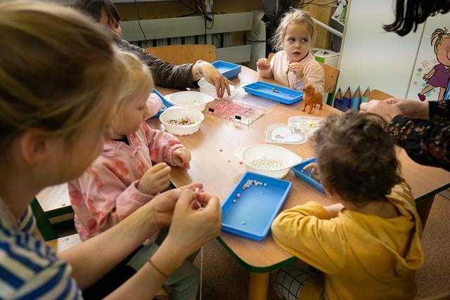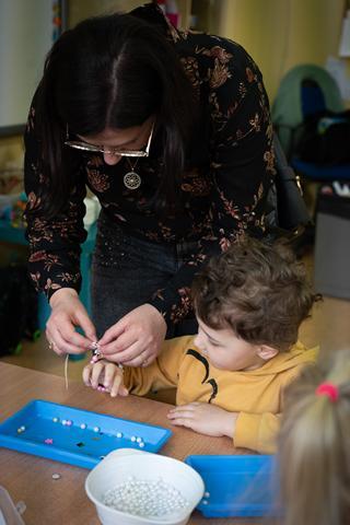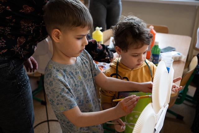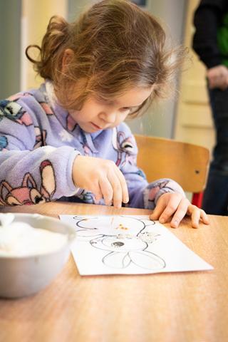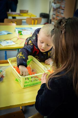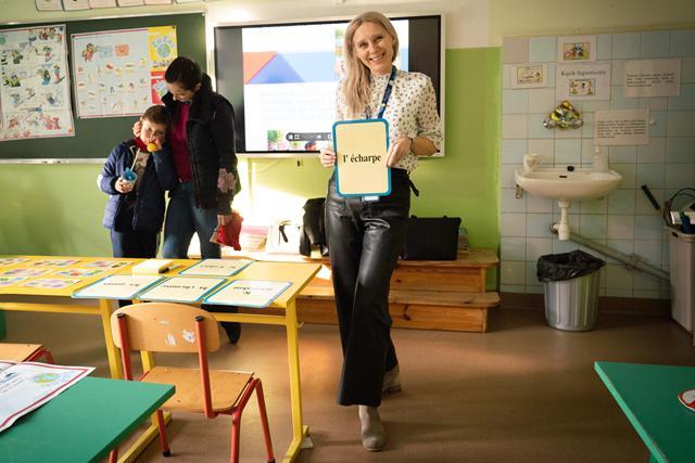 Nie zabrakło również lekcji francuskiego, podczas której można było poznać pierwsze słowa w tym pięknym języku. Dużo kreatywności pojawiło się przy rysowaniu na dywanie, gdzie powstawały kolorowe i niezwykłe dzieła.