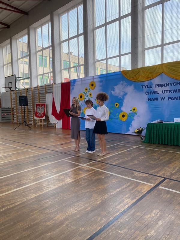 Dnia 20 czerwca 2024 roku odbyło się uroczyste pożegnanie uczniów i uczennic klas ósmych. Punktualnie o godzinie 17.00 prowadzący uroczystość – Wiktoria Tomczyk i Bartłomiej Agopsowicz – uczniowie klas VIII b i c – powitali na sali gimnastycznej dyrekcję szkoły, grono pedagogiczne, rodziców i przede wszystkim absolwentów Szkoły Podstawowej nr 68 im. 12 Pułku Ułanów Podolskich w Szczecinie.